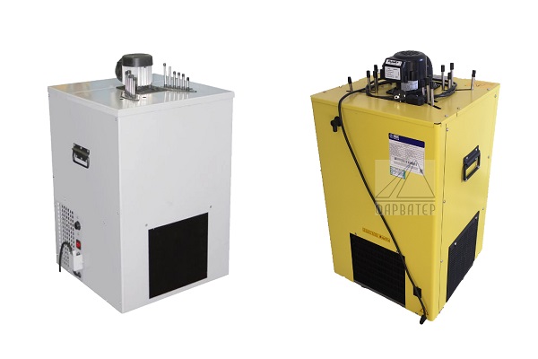 Компактнее и быстрее охлаждают. Не нужно менять ванну с охлаждающей водой. Для того, чтобы "сухой" охладитель запустился в работу, нужно всего 15-25 минут, проточному до 5 часов.