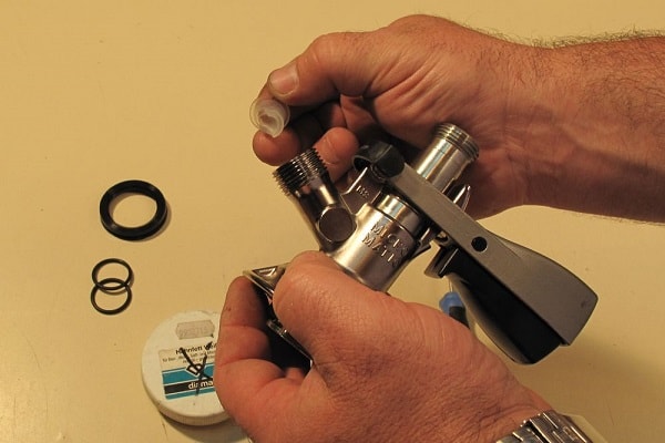 8. Смазываем пищевой смазкой шток и внутреннюю поверхность заборной головки.