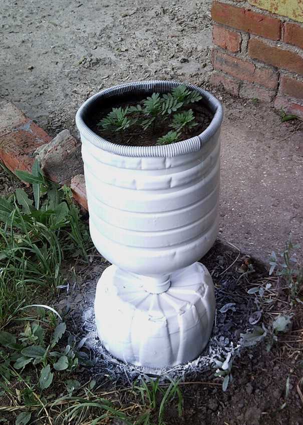 Емкость обеспечивает хороший запас воды. Не нужно придумывать, как сделать крышку, она уже есть, а через горловину наливается вода.Отверстие небольшого диаметра, поэтому вода будет медленно испаряться.