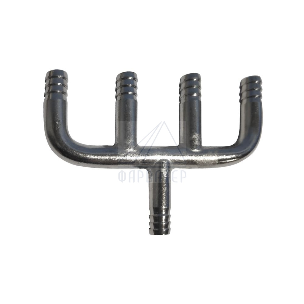 Разветвитель имеет на концах утолщение (елочку) и крепко соединяется со шлангом с помощью хомутов. Выполнен из анодированной латуни, прочный, долговечный. Не окисляется при контакте с пивом.